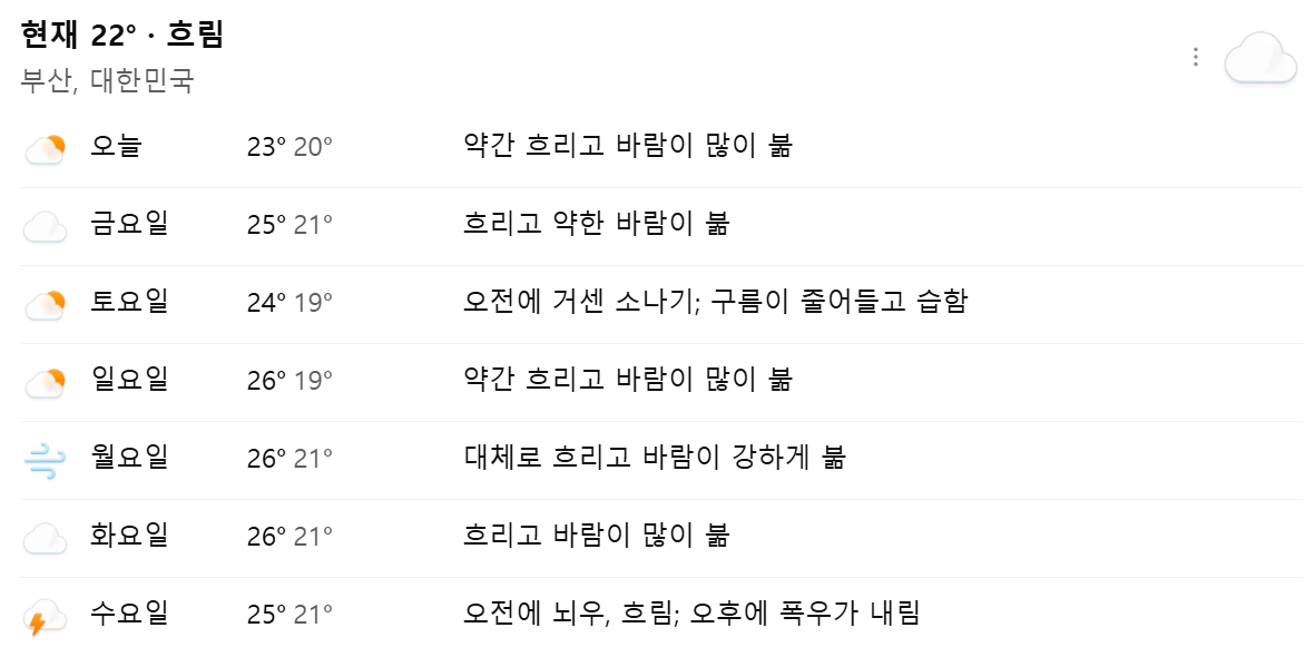 - 부산 날씨 핵심은 해풍(해수면-육지 온도차)과 지형 영향.