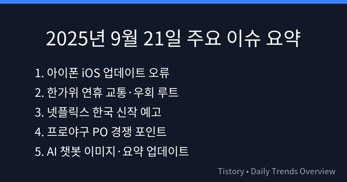 - 링크 : 2025.09.22 - [디지털 도구 & 생산성] - [9/21] 아이폰 iOS 업데이트 후 버그·배터리 소모 이슈 종합 가이드: 내가 직접 해본 해결법 + 10초 점검표